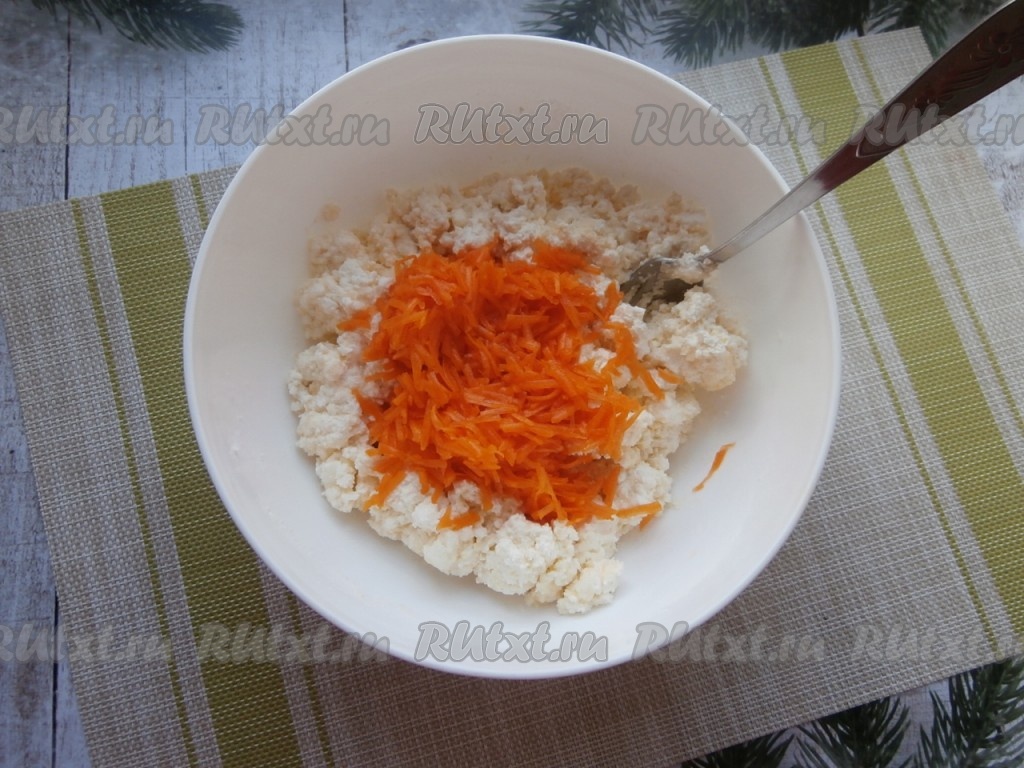 Перемешать творожную массу, добавить отжатую от жидкости тыкву.