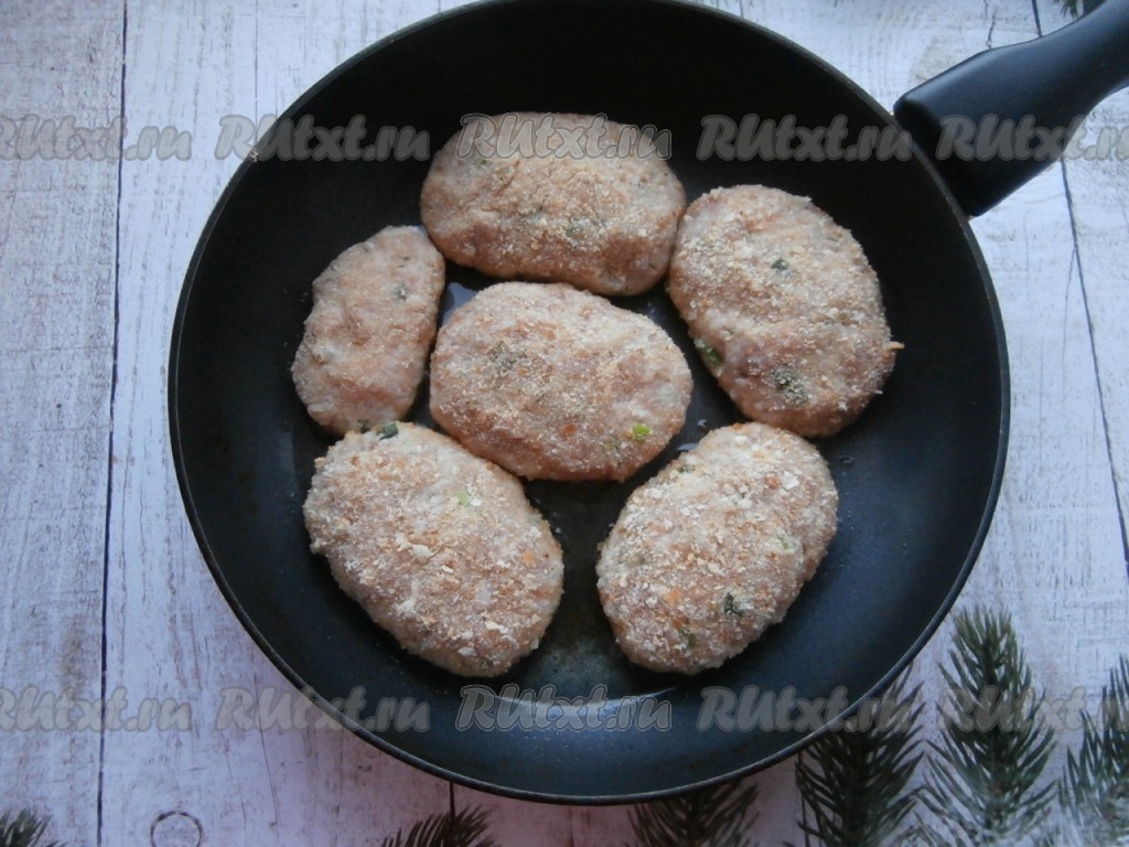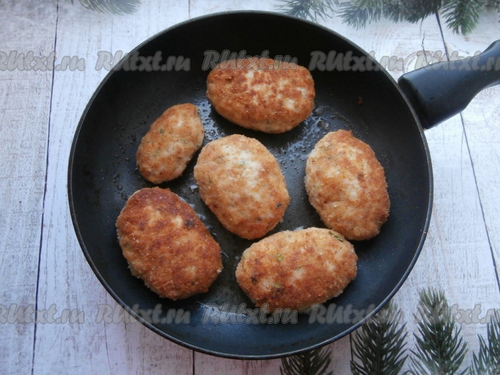 Хорошо прогреть в сковороде растительное масло, затем выложить куриные зразы с сыром.