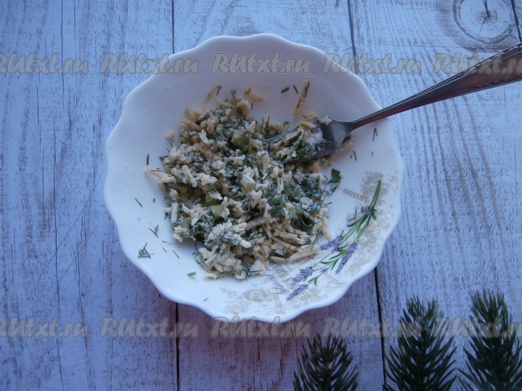 Хорошо перемешать сырную массу и начинка для наших куриных зраз готова.