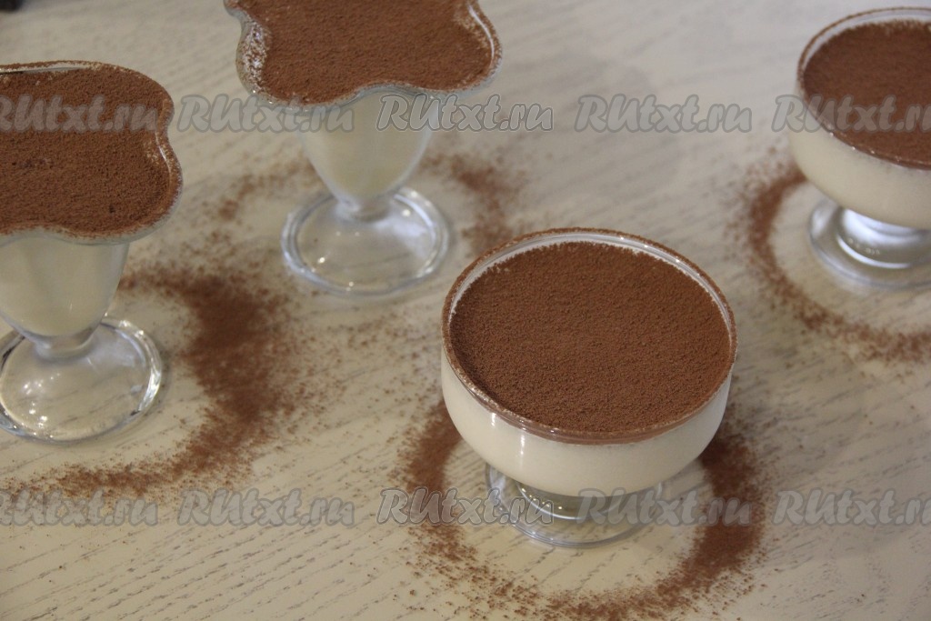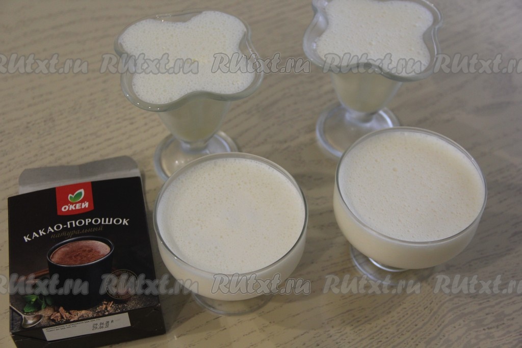 Разлить массу по креманкам (или фужерам) и поставить в холодильник на ночь (до полного застывания). У меня получилось 4 формы объёмом 200 мл.