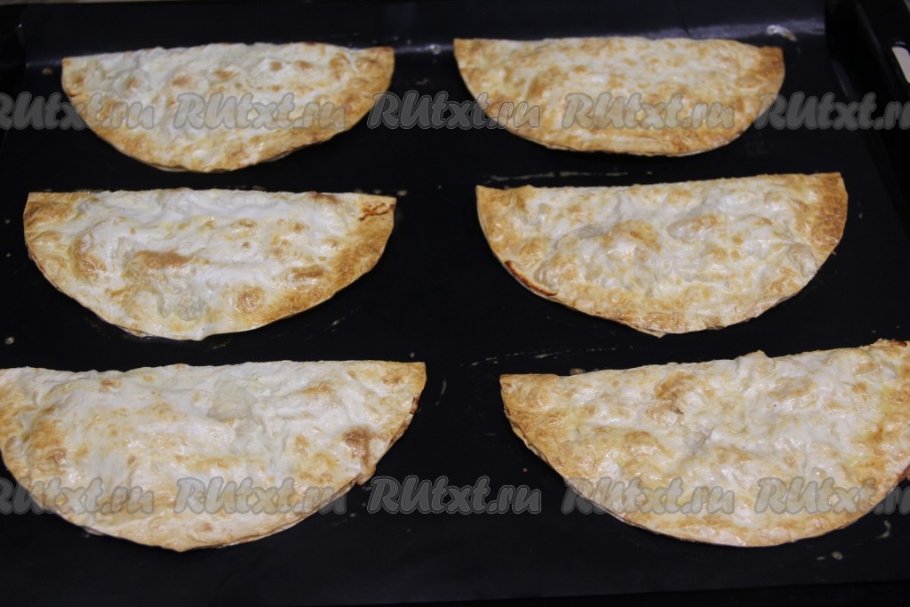 Готовые очень сочные, вкусные чебуреки из лаваша с фаршем достать из духовки и в горячем виде подать к столу.