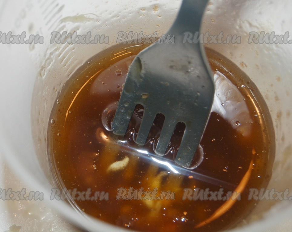 Затем добавить в миску кунжутное масло, соевый соус и мед.