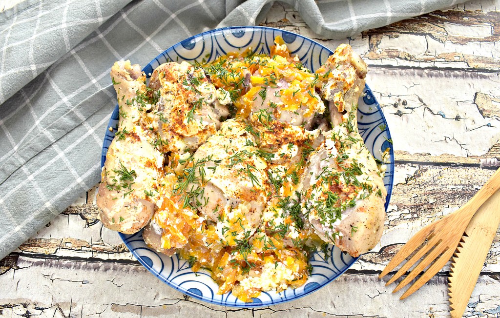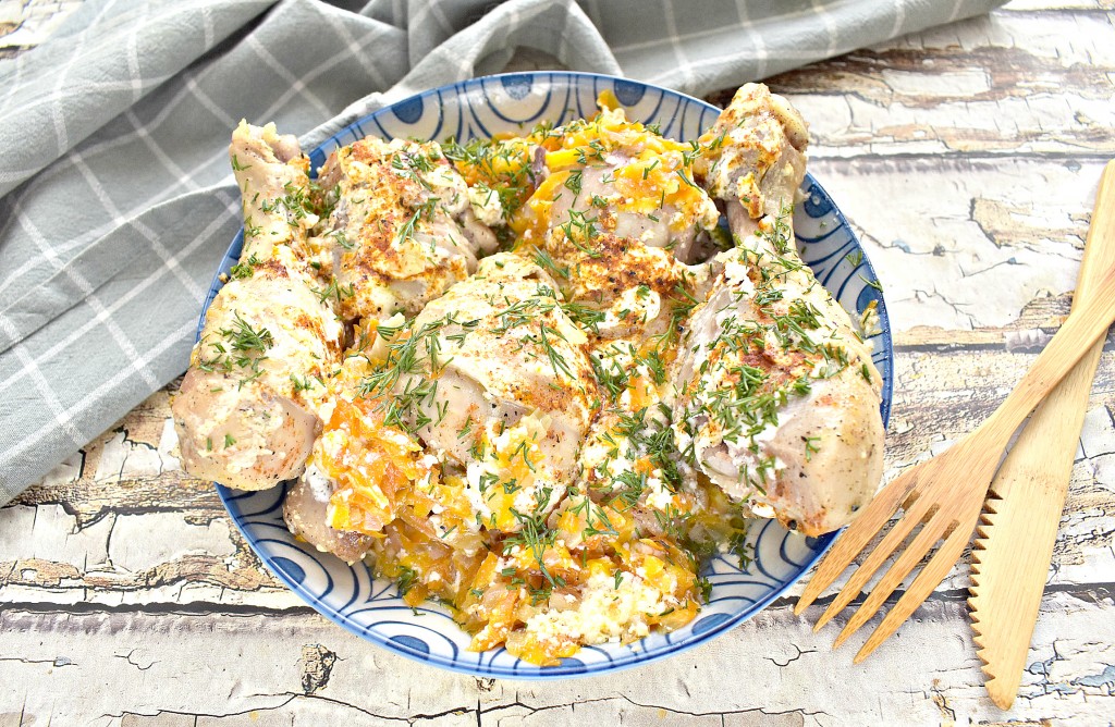 Сверху посыпаем приправой для приготовления блюд из курицы.