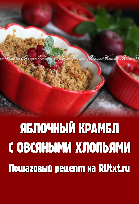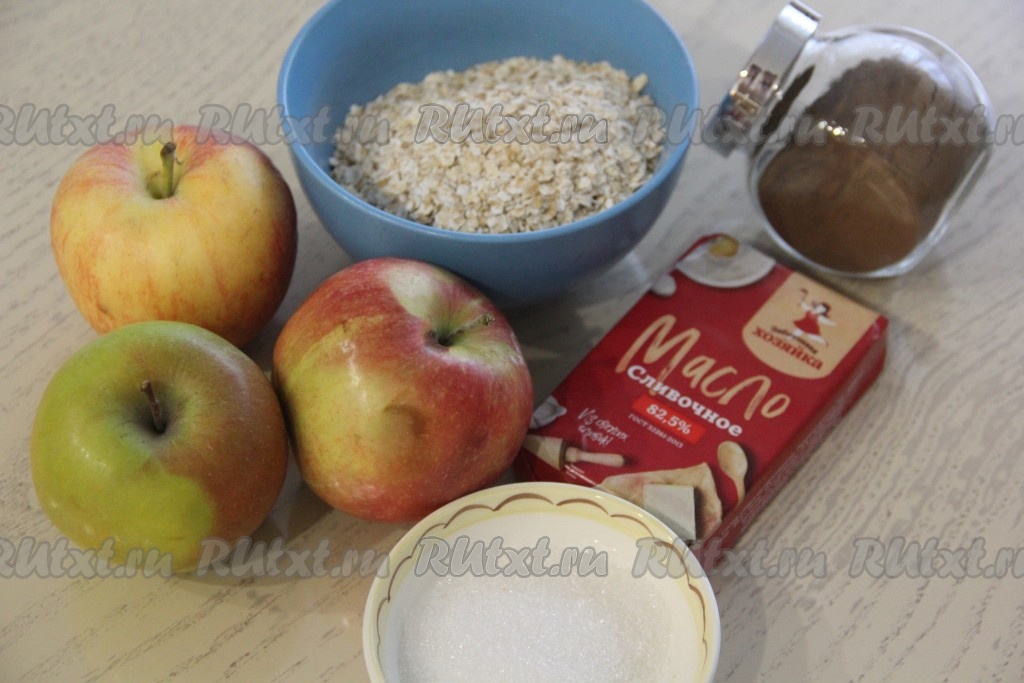 Предлагаю на завтрак или в качестве десерта приготовить вкусный, полезный, ароматный яблочный крамбл с овсяными хлопьями. В этом блюде отлично сочетаются приятно похрустывающая овсяная корочка и сочные яблочки. Рецепт очень простой. Хлопья можно использовать любого помола, я взяла хлопья помола № 2. Подавать этот десерт лучше всего горячим, по желанию, его можно дополнить свежими ягодами или шариком мороженого. Приготовьте полезный, ароматный крамбл и он, наверняка, придётся вам по вкусу!