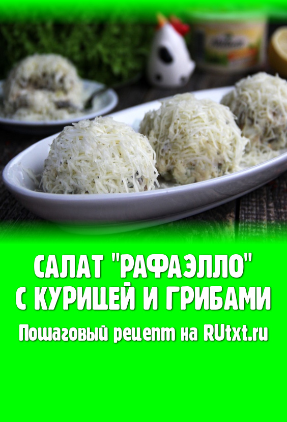 Выложить "Рафаэлки" на тарелку и подать к столу. Салат "Рафаэлло" с курицей и грибами получается нежным и сытным, а ещё он очень красиво смотрится на праздничном столе.
