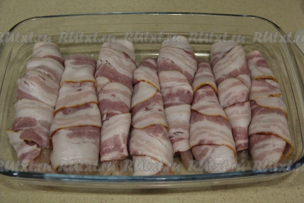 Куриное филе, завёрнутое в бекон, в духовке