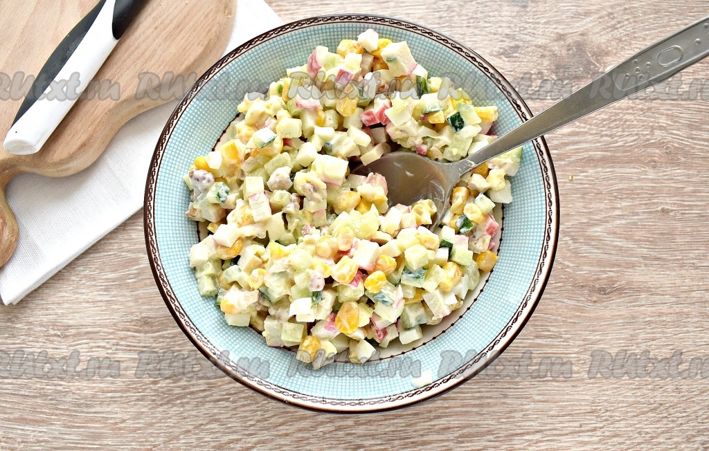 Ингредиенты крабового салата перемешиваем.