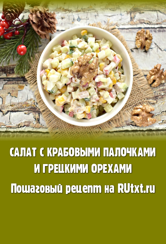 Салаты с крабовыми палочками уже давно стали кулинарной классикой, но по-прежнему остаются любимыми, популярными и востребованными. Чтобы привнести в традиционный крабовый салат новый вкус, предлагаю дополнить ингредиенты грецкими орехами. Грецкие орехи отлично дополняют крабовые палочки и от этого блюдо только выигрывает. Приготовьте этот вкусный, аппетитный, яркий салат и он, наверняка, понравится и вам, и вашим близким!