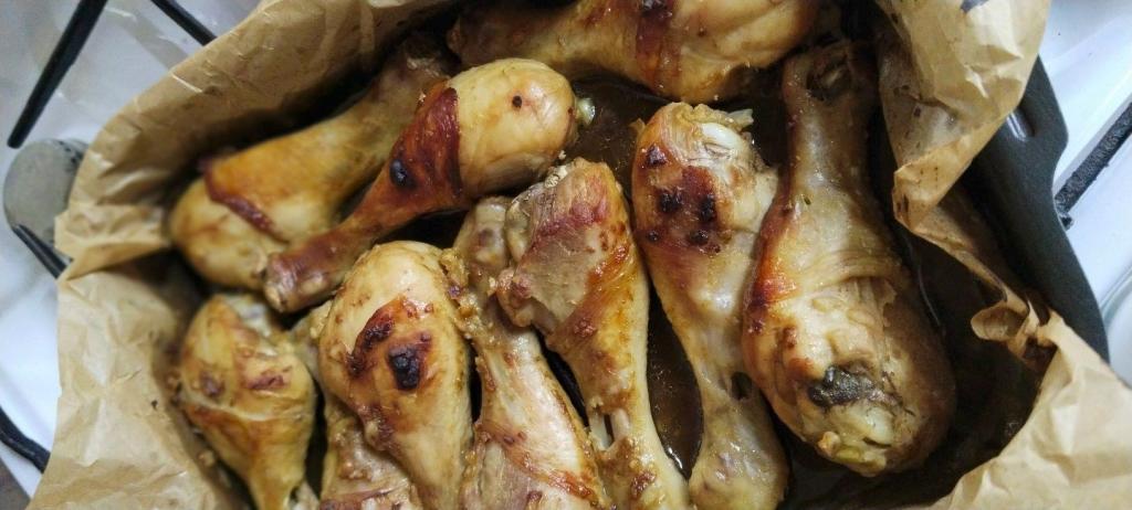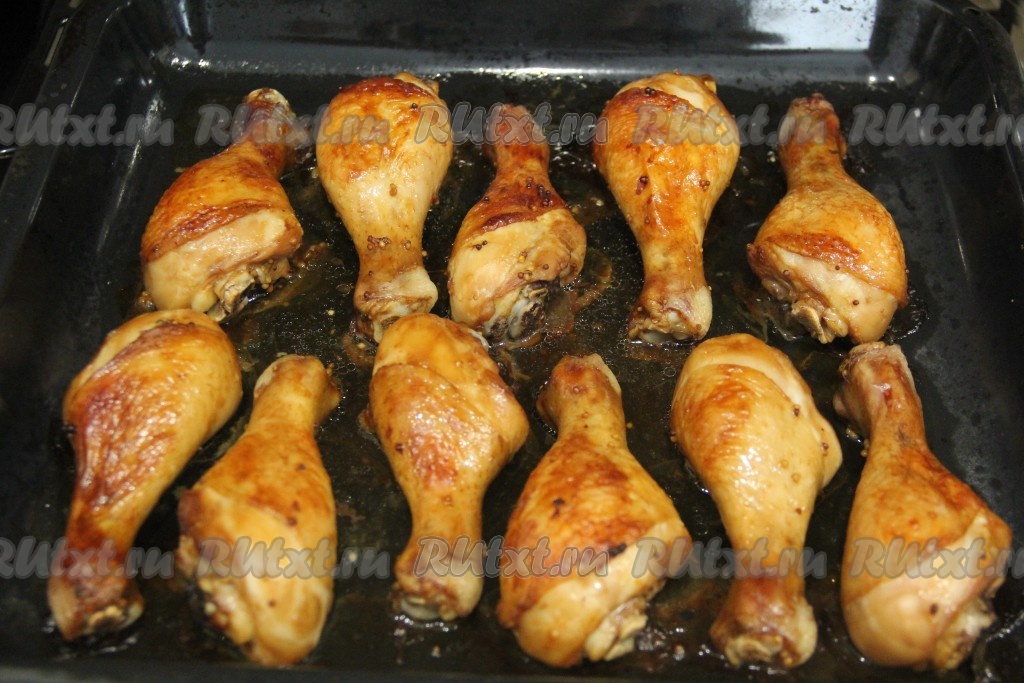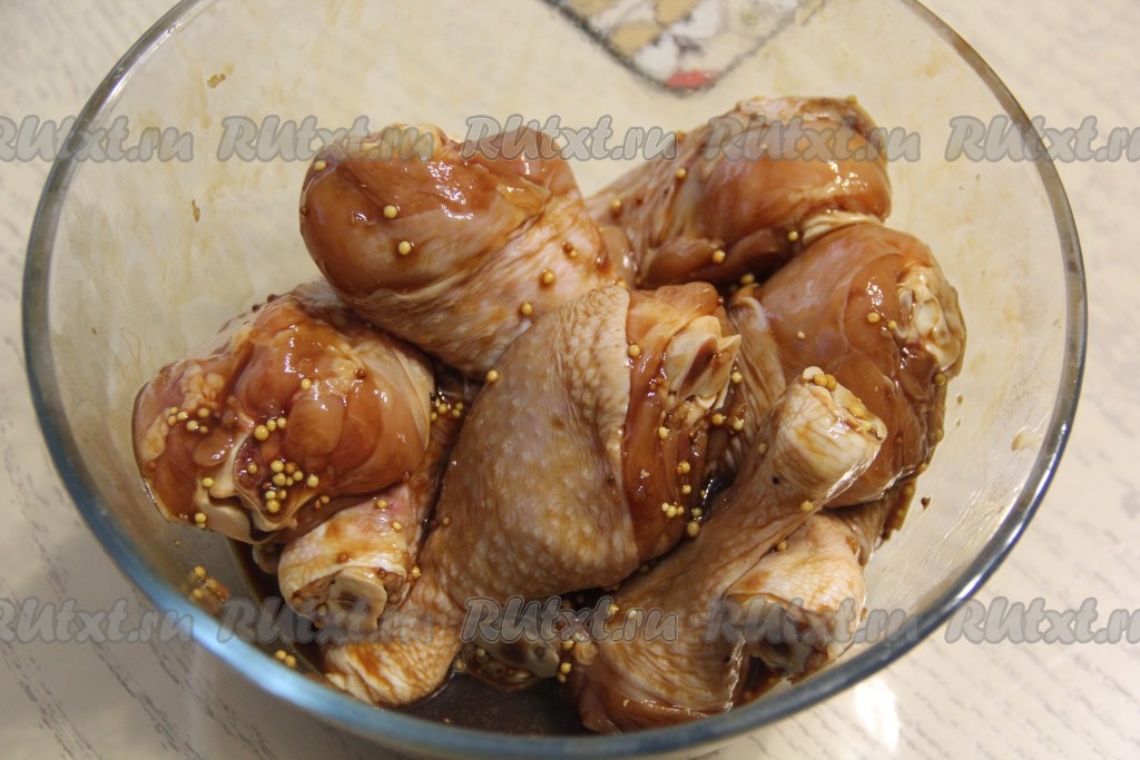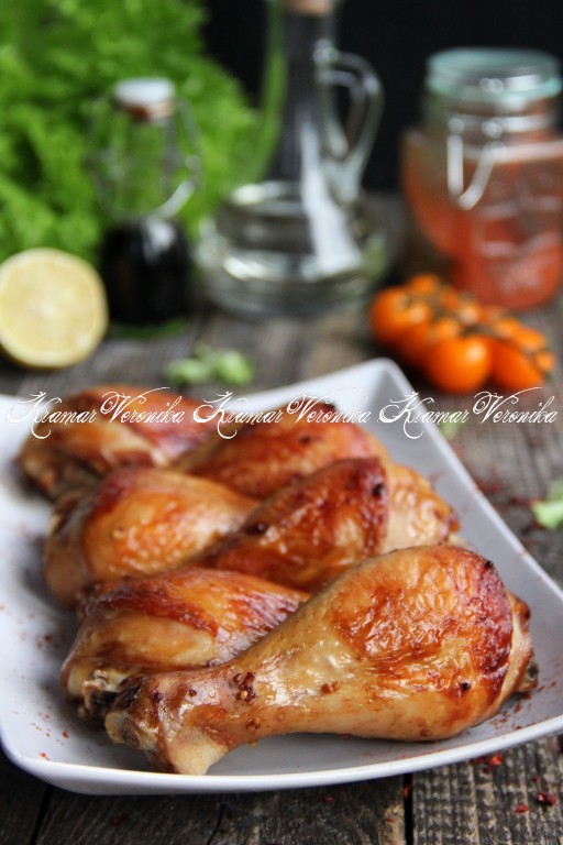 Запекать куриные ножки в соевом соусе 1 час в разогретой духовке при температуре 200 градусов. Ножки должны покрыться красивой золотистой корочкой.