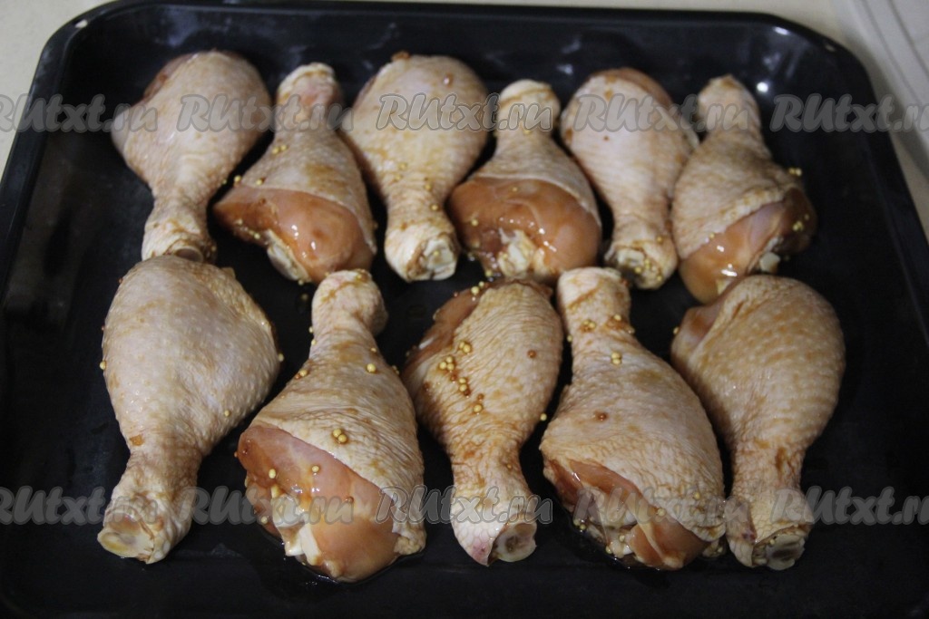 Выложить замаринованные ножки на противень.