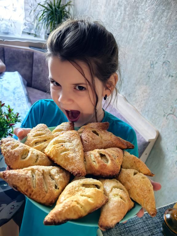 У меня всегда в холодильнике есть пачка слоёного теста. Это тесто для меня, как палочка-выручалочка, ведь из него можно быстро и просто испечь вкусные слоёные пирожки с любой начинкой. Сегодня я сделала слойки с начинкой из творога с яблоками. Слоечки получились очень воздушными и хрустящими, а творожо-яблочная начинка - сочной и очень вкусной. К яблочкам можно добавить немного корицы и тогда слойки будут ароматными и пряными. Слоёное тесто для этого рецепта подойдёт и бездрожжевое, и дрожжевое. Приготовьте такие слойки и насладитесь их вкусом и ароматом!