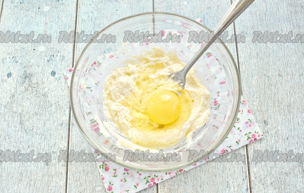 В эту массу разбиваем сырое яйцо.