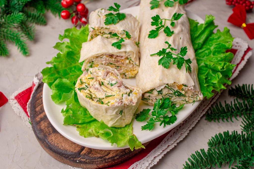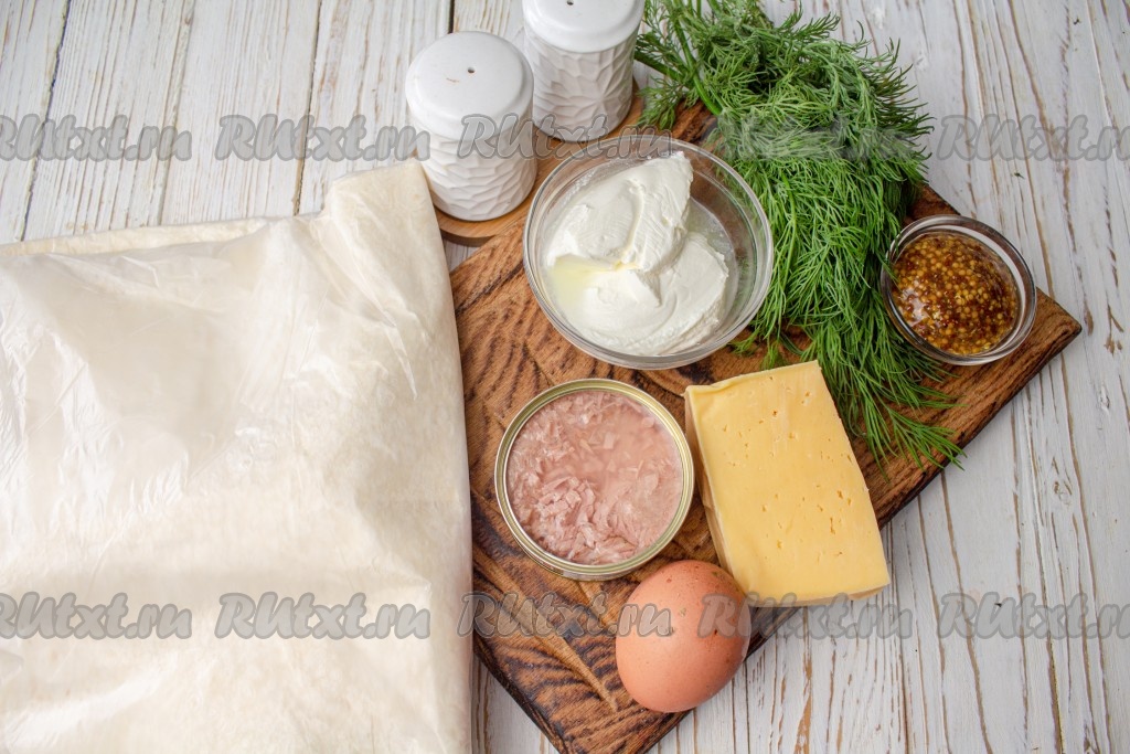 Приготовьте рулет из лаваша с консервированным тунцом, сыром и варёными яйцами - эта сытная, аппетитная и вкусная закуска вам непременно понравится!