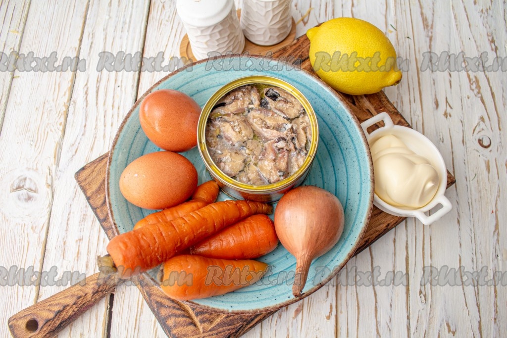 Салат "Мимоза" - известное блюдо, полюбившееся многим ещё с советских времен, его часто готовят и в наши дни. Вариантов этого блюда немало. Часто в состав этого салата входят сливочное масло или сыр, рис или картофель. Я хочу предложить рецепт "Мимозы", которая готовится с рыбными консервами, варёной морковью, яйцами и луком. Блюдо получается аппетитным и очень вкусным. Этот салат достаточно сытный, несмотря на то, что готовится без добавления картошки или риса. Просто и очень вкусно, попробуйте!