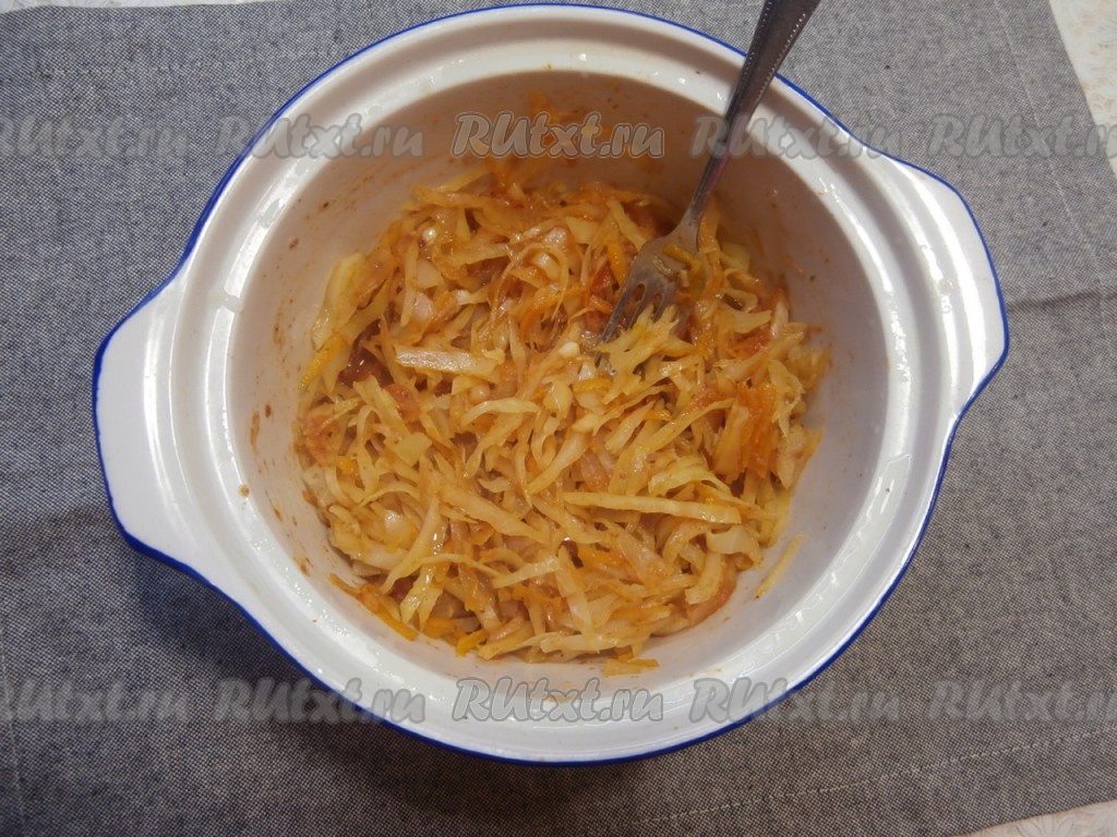 Затем капусту перемешать и поместить кастрюльку в микроволновку ещё на 2-3 минуты, но уже с открытой крышкой.