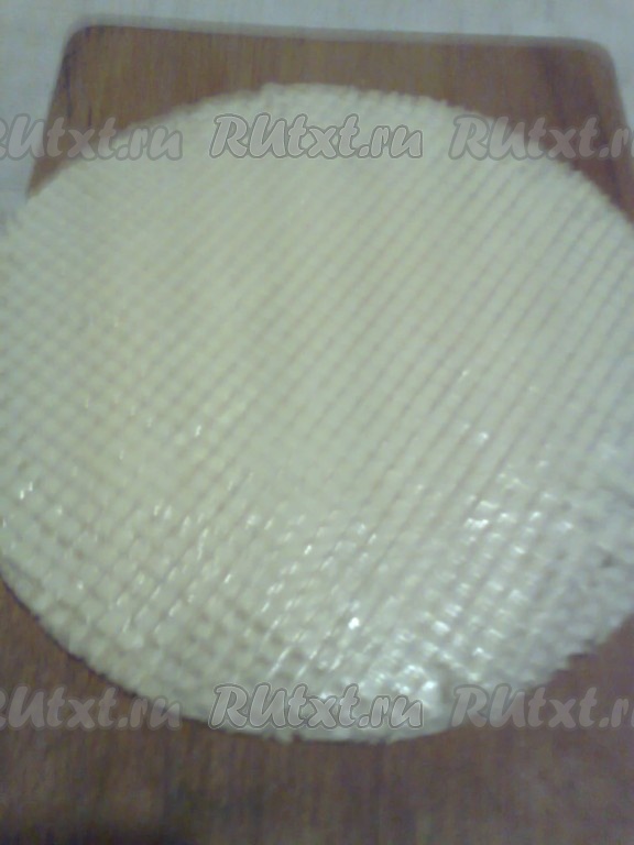 Лук очистить, нарезать на мелкие кубики, ошпарить кипятком и дать остыть. Рыбные консервы открыть, слить жидкость, размять рыбу вилкой (при необходимости). Добавить к консервам отжатый лук и перемешать. Первый вафельный корж смазать майонезом и выложить на сервировочную тарелку. Я выкладывала на разделочную доску, а затем переносила готовый торт на блюдо, но удобнее класть сразу на блюдо.