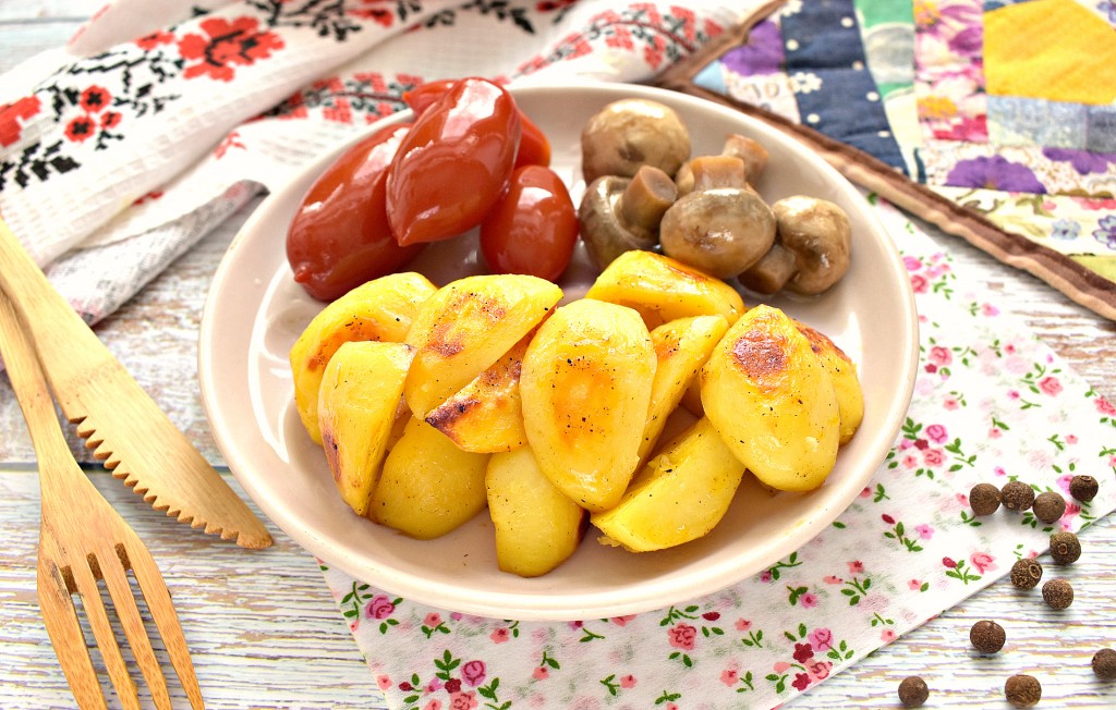 Затем достаём форму из духовки. Вот так достаточно просто можно приготовить в рукаве вкусную, аппетитную, сытную картошку по-деревенски. К столу подаём в горячем виде в качестве гарнира или основного блюда.