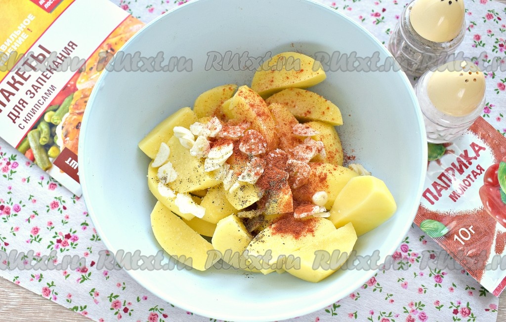 Для приготовления в духовке картошки по-деревенски в рукаве потребуется: