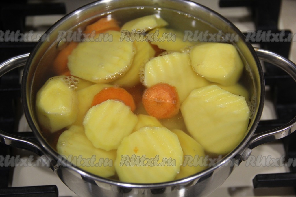 По истечении времени откинуть морковку и картошку на дуршлаг.