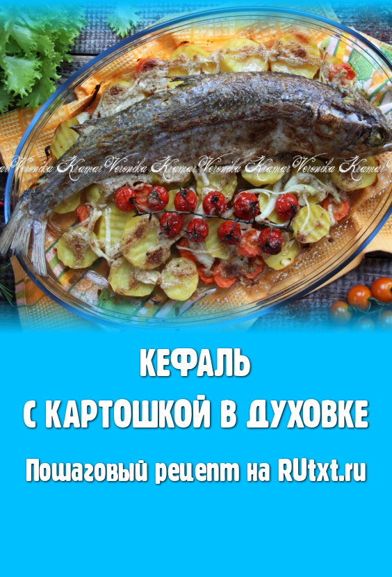 Накрыть форму фольгой и поставить в разогретую духовку. Запекать кефаль с картошкой при температуре 200 градусов, примерно, 30 минут.