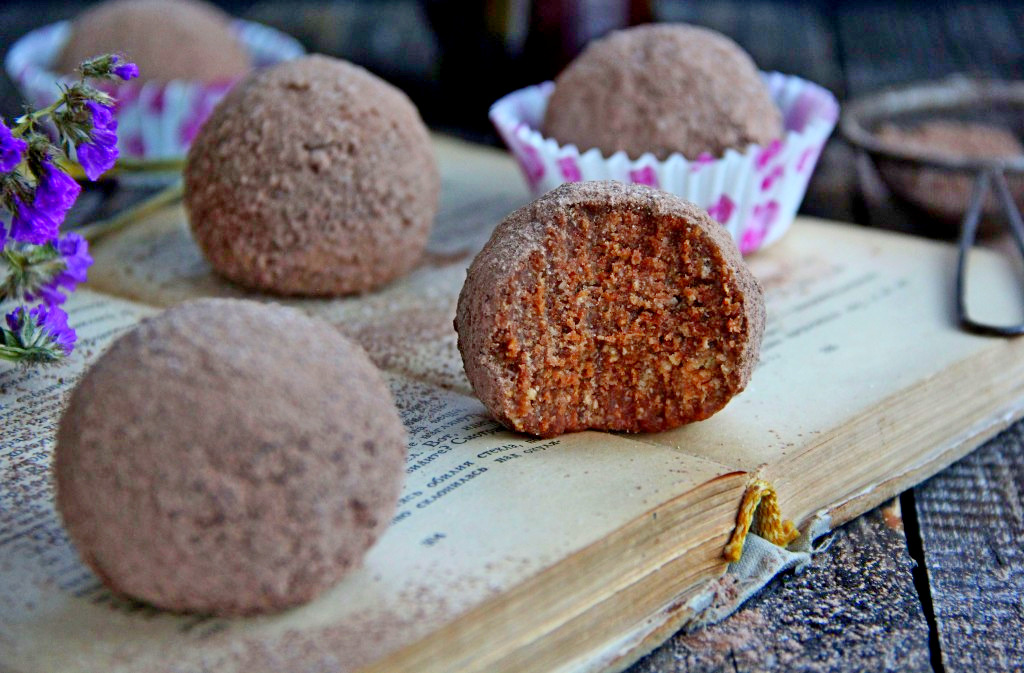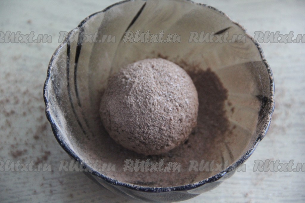 Для обсыпки соединить какао и сахарную пудру. Обвалять каждое пирожное в какао с пудрой со всех сторон и наш десерт готов.