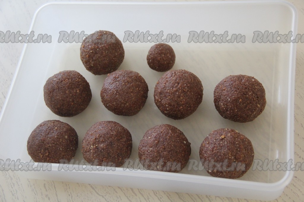 Влить жидкую шоколадную массу в сухари и перемешать. Масса станет однородной. Накрыть миску с массой пищевой плёнкой и убрать в холодильник на 20 минут. По прошествии времени достать массу и сформировать из неё круглые пирожные. Я сформировала 9 пирожных "Картошка" по 80 грамм каждое. Переложить сформированное пирожные в лоток, закрыть крышкой и убрать на час в холодильник.