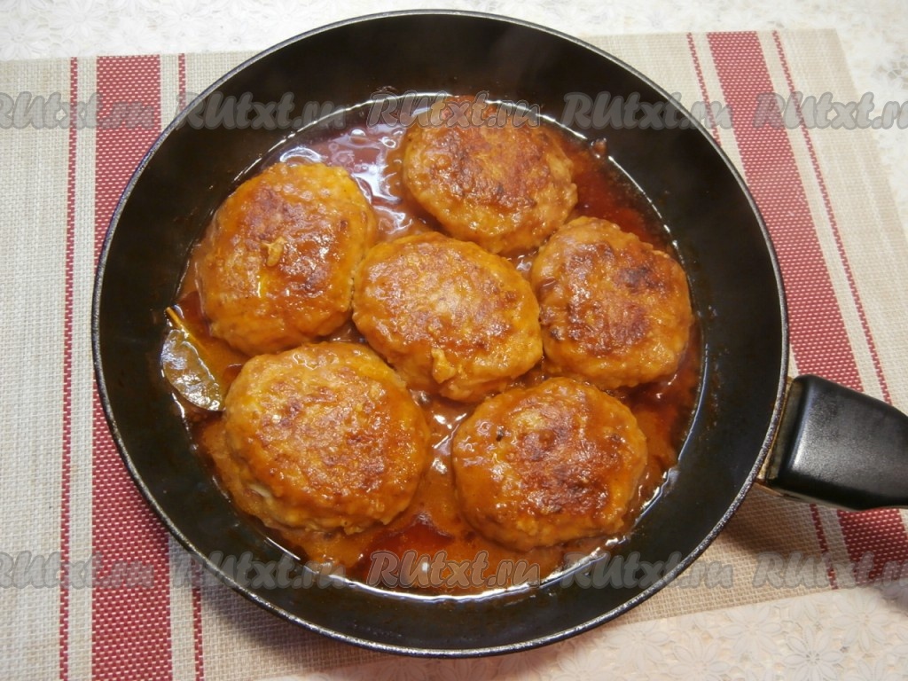 В сковороде разогреть 2-3 столовые ложки растительного масла и выложить голубцы, сформированные в виде котлет.