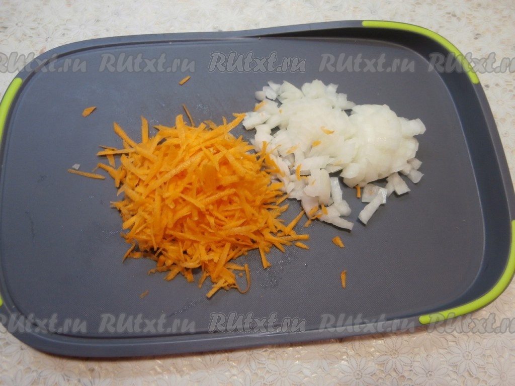 Лук и морковку очистить, с капусты удалить порченые листочки. Луковицу мелко нарезать, морковку нужно натереть на крупной тёрке.