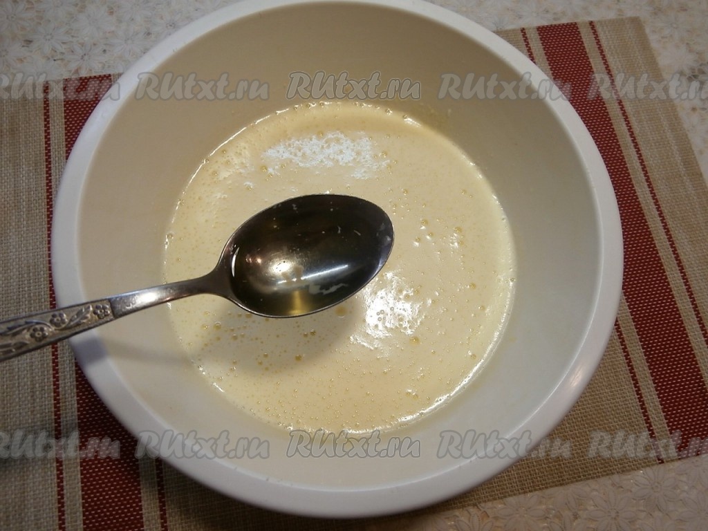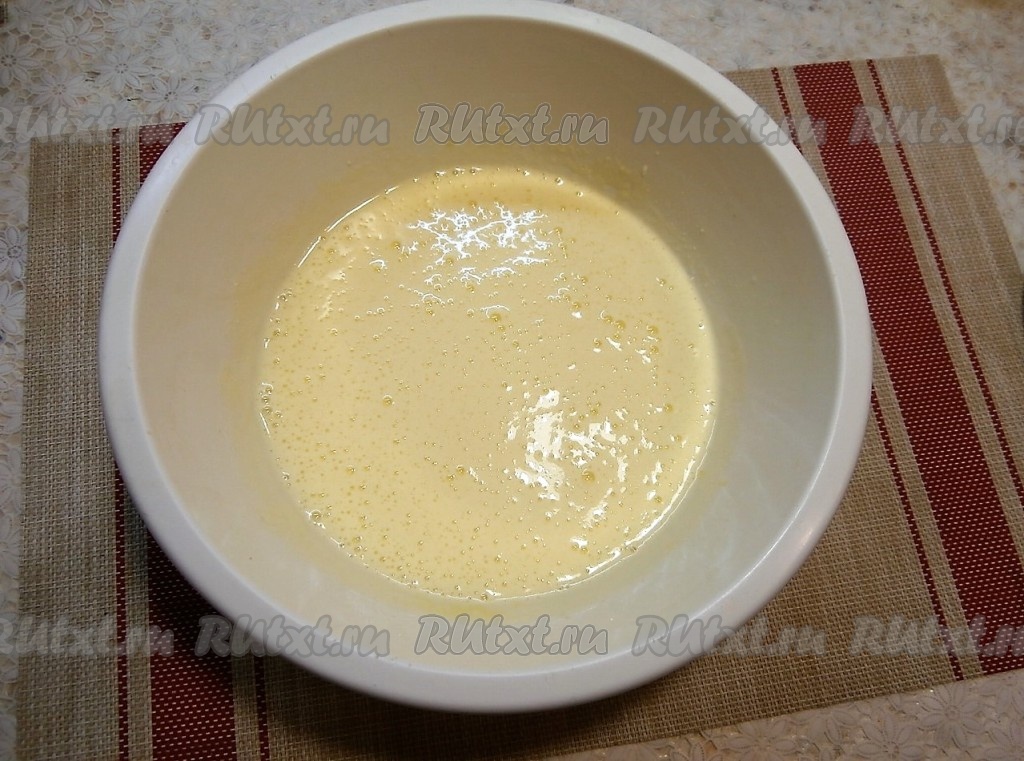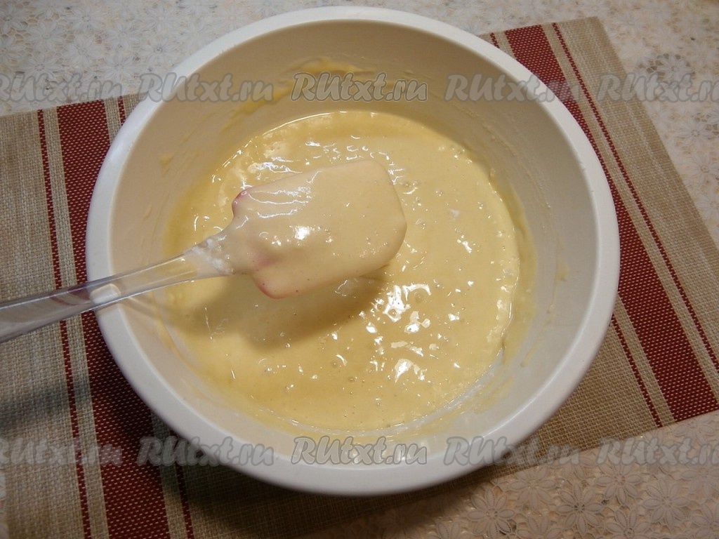 Очень хорошо взбить содержимое миски миксером (примерно, минут 5). Масса должна стать светлой, пышной, немного тягучей.