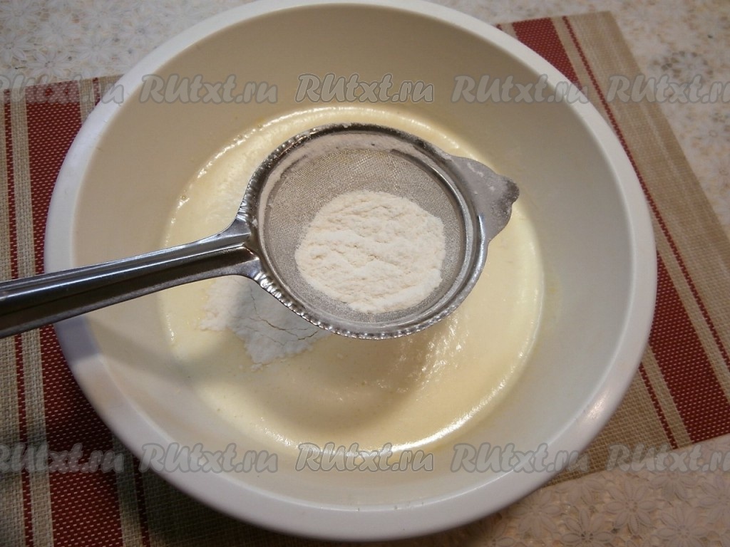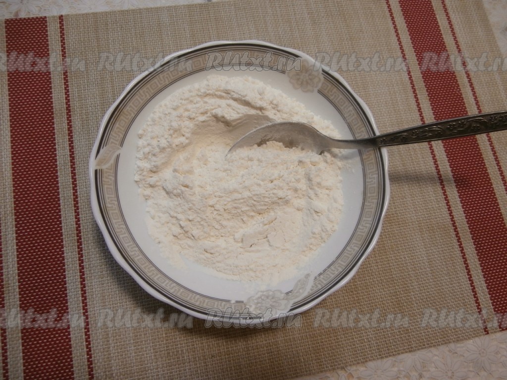 Отдельно муку смешать с разрыхлителем.