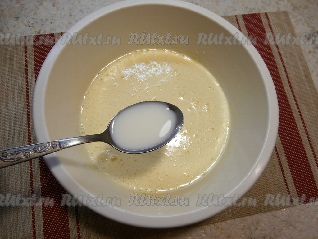 Затем в получившуюся массу влить 12 столовых ложек молока.