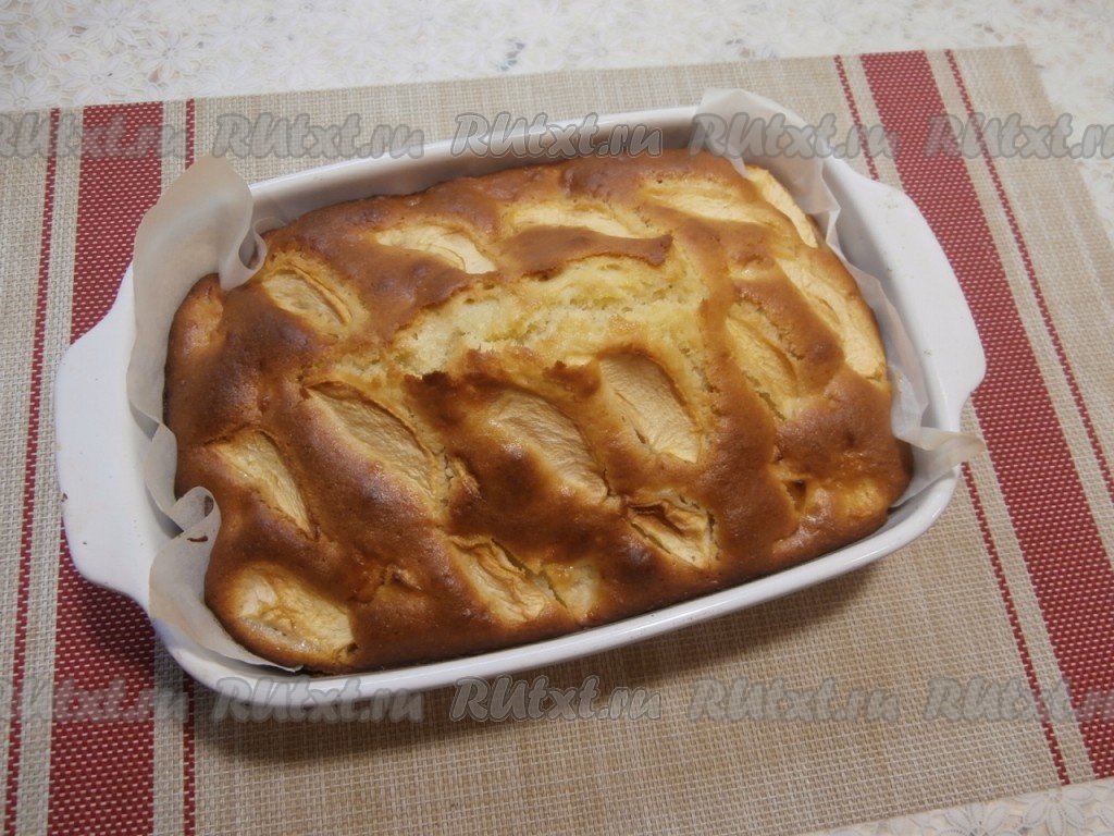 Духовку разогреть до 180 градусов и отправить в неё форму с тестом. Выпекать пирог минут 45-50 (готовность можно проверить шпажкой, если шпажка и после прокола пирога останется сухой, значит пора вынимать выпечку из духовки).