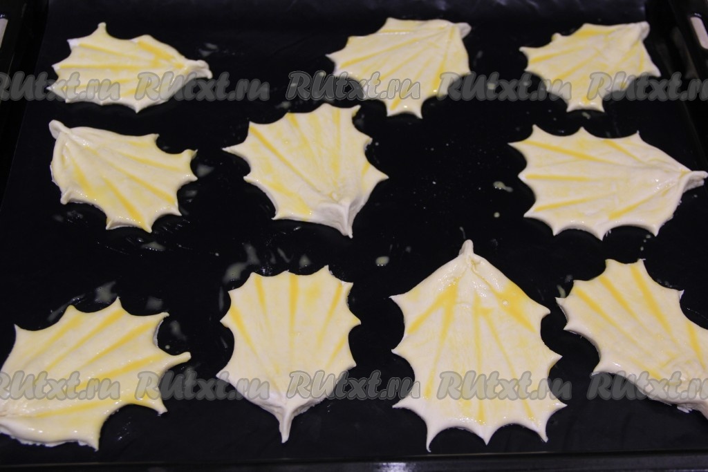 Яичный желток слегка взбить и смазать им верх заготовок.
