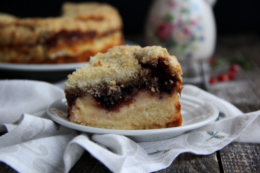 Выложить равномерно вторую часть крошки поверх начинки. Насыпаем крошку и не прижимаем. Ставим форму с ватрушкой в разогретую духовку и выпекаем минут 45-50 при температуре 200 градусов.