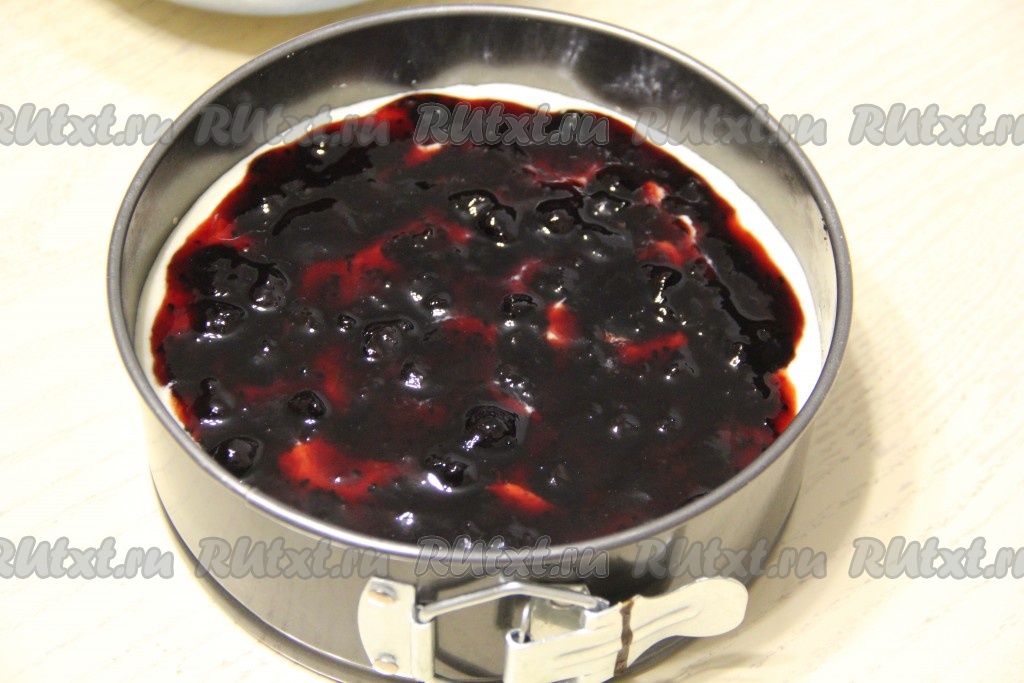 Поверх творожной массы аккуратно с помощью ложки равномерно разложить густое варенье.