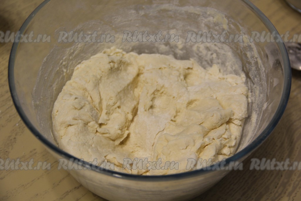 Перемешать тесто сначала лопаткой, затем продолжить замешивать руками. Влить растительное масло и хорошо вымесить тесто, оно получится мягким, приятным в работе.