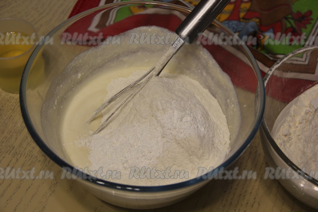 Всыпать муку и разрыхлитель.