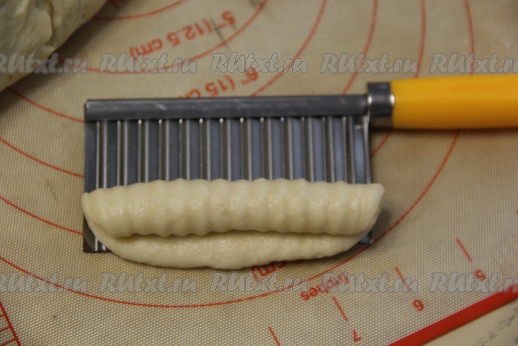 Скрутить пласт теста в рулетик.