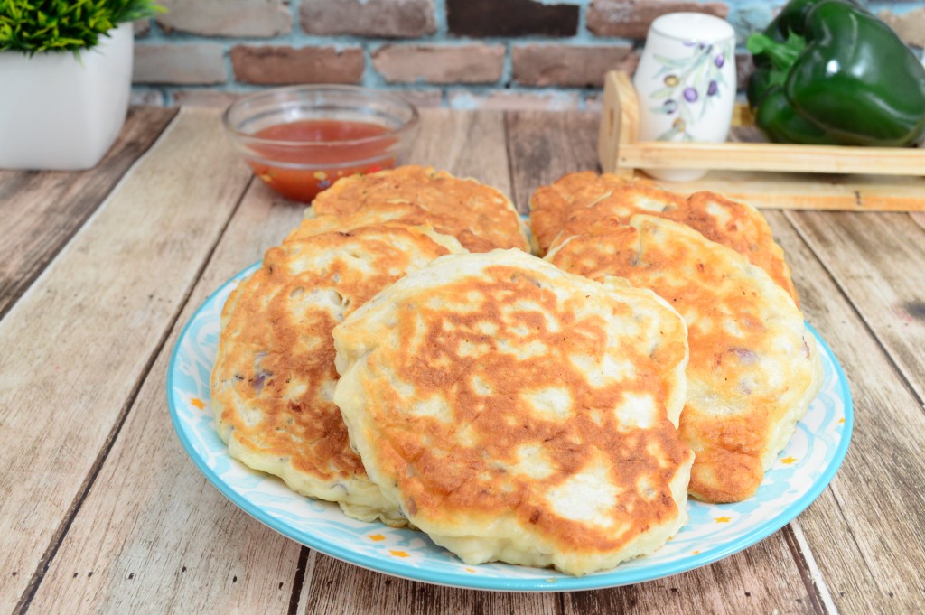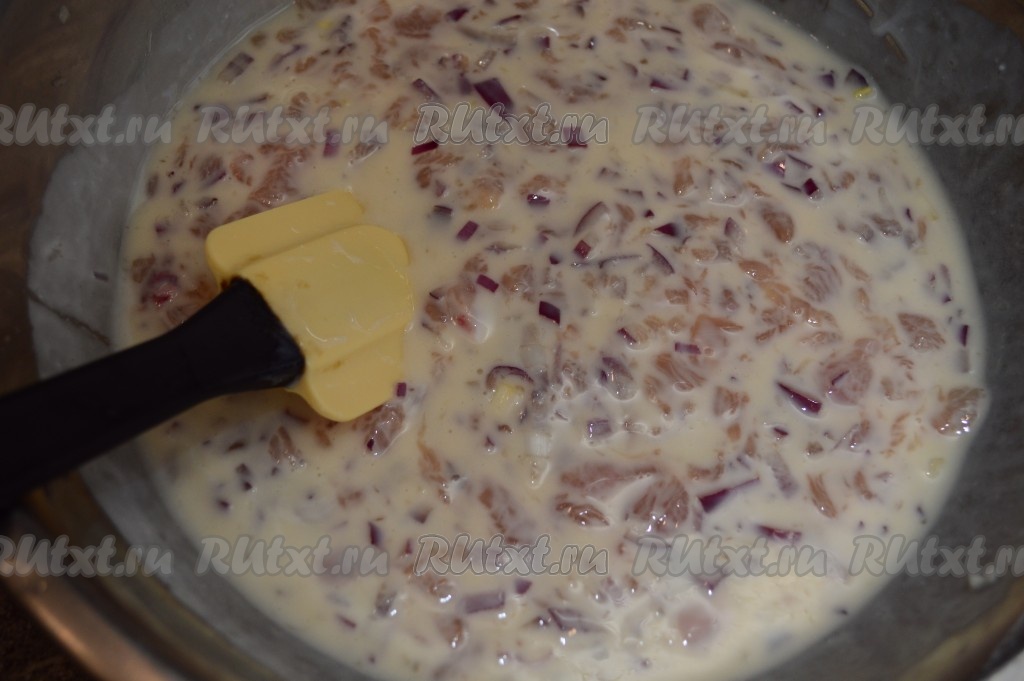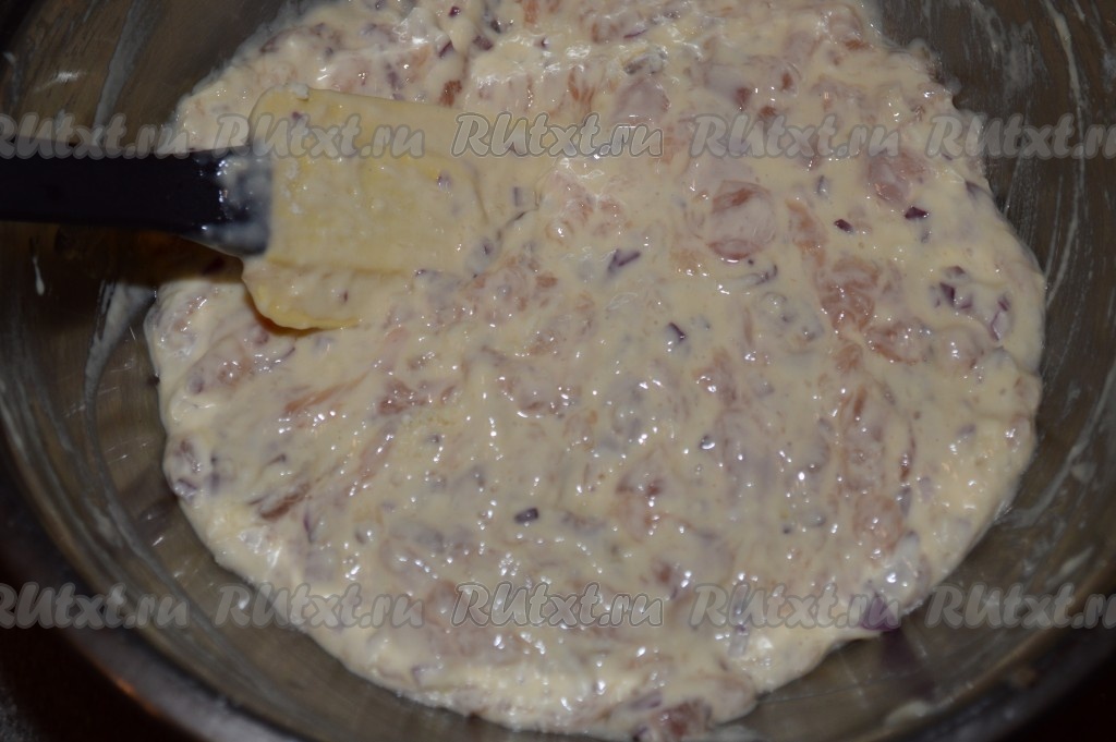 Тесто для куриных оладий должно получиться средней густоты, его консистенция будет напоминать тесто для обычных оладушек.
