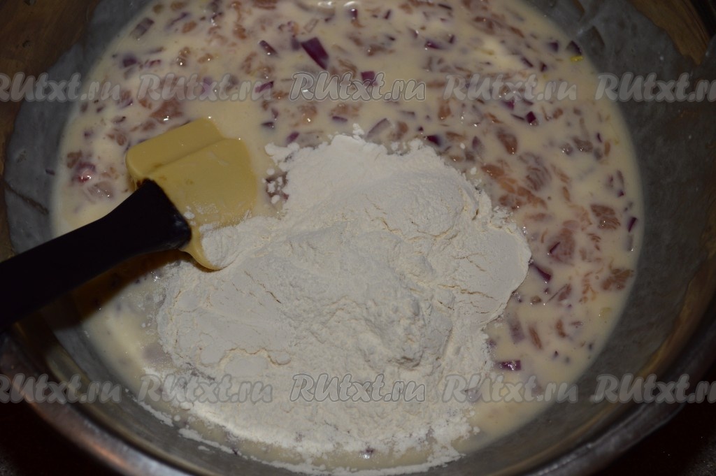 Постепенно, примерно, по 1-2 столовой ложке, всыпать муку в получившуюся массу, каждый раз хорошо перемешивая.