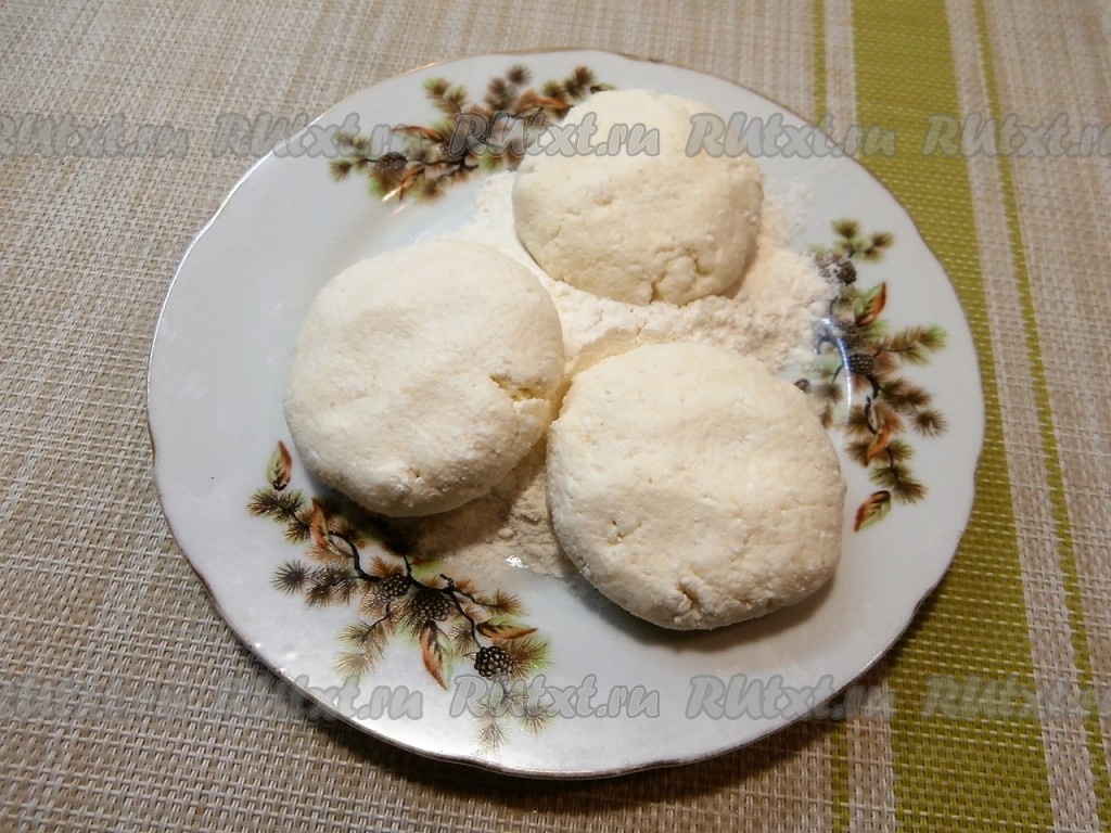 Сформировать чуть влажными руками небольшие сырники, обвалять их в муке со всех сторон.