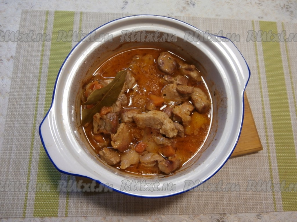 Гуляш из свинины с подливкой в духовке
