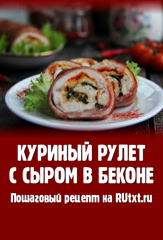 Сегодня предлагаю запечь в духовке куриный рулет с сыром в беконе. Это вкусное, нежное и ароматное мясное блюдо можно нарезать на кусочки и подать на отдельном блюде как холодную закуску, а можно, выложив на хлеб, использовать вместо колбасы. Бекон придаёт рулету аромат и сохраняет сочность куриного мяса, а сырная начинка гармонично дополняет вкусовые качества блюда. Приготовить такой рулет несложно, всем советую этот рецепт!