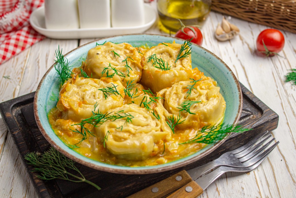 Нарежьте рулет на кусочки шириной 3-4 см, это и будут заготовки ленивых пельменей.