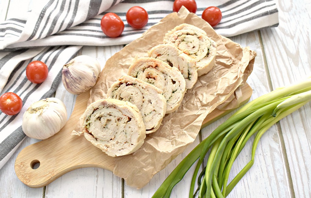 Вкусный, аппетитный куриный рулет с чесноком, приготовленный из филе грудки в духовке, нарезаем на порционные кусочки и подаём в тёплом или в остывшем виде к столу.