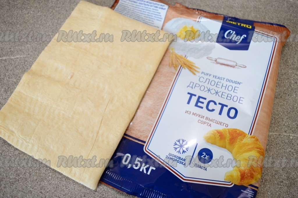 Прежде всего нужно разморозить слоёное тесто при комнатной температуре.