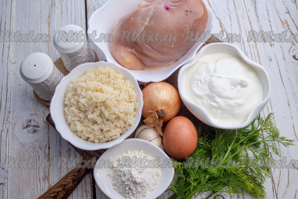Подготовьте все необходимые ингредиенты. Заранее отварите рис до полуготовности, для этого промойте его и выложите в кастрюлю с кипящей подсоленной водой, варите с момента закипания на умеренном огне минут 8-10, затем воду слейте и дайте остыть. Для приготовления тефтелей потребуется, примерно, 200 грамм риса, отваренного до полуготовности.