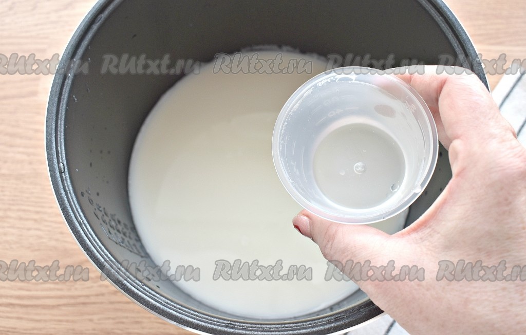 Сюда же вливаем тёплое прокипячённое молоко и тёплую кипячёную воду.