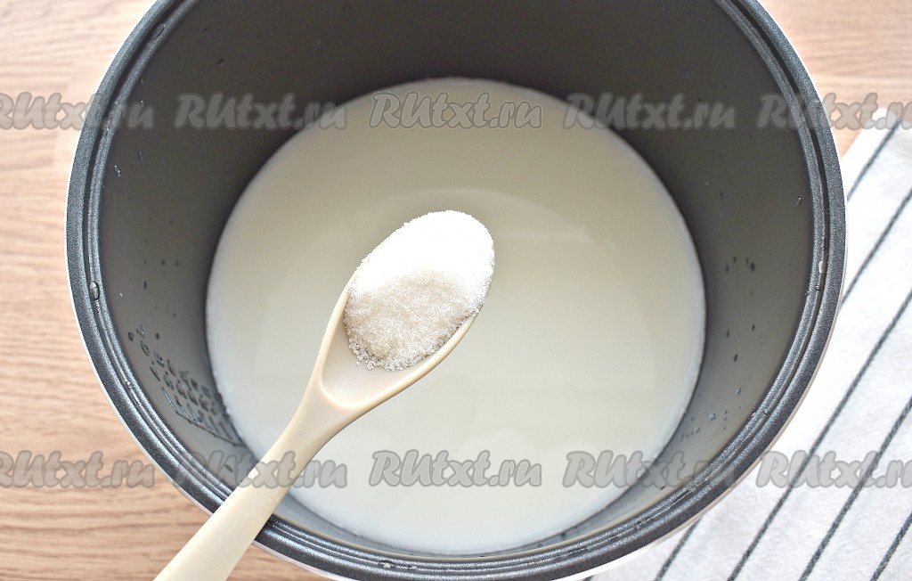 Солим по вкусу, всыпаем сахар. Я добавила 2 чайные ложки сахара, но ориентируйтесь на свои вкусовые предпочтения. Перемешиваем содержимое чаши мультиварки.
