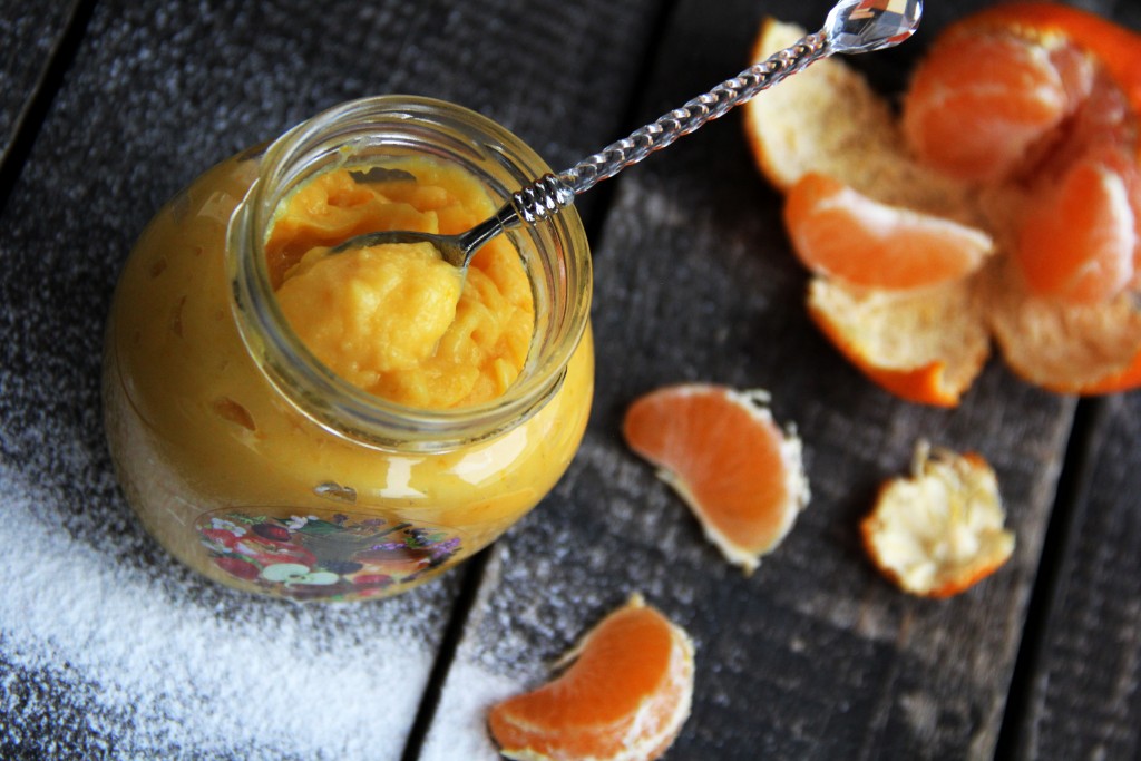 Переложить курд в баночку, прикрыть крышкой, оставить до полного остывания, а затем поставить его на ночь в холодильник. После остывания он станет достаточно густым. Вот так достаточно просто можно приготовить ароматный, наивкуснейший, в меру сладкий курд из мандаринов с добавлением крахмала. Мандариновый курд прекрасно подходит для прослаивания бисквитных тортов и пирожных, с ним получаются восхитительные капкейки, да и просто его можно намазывать на свежую булочку и кушать с молоком, чаем или кофе.
